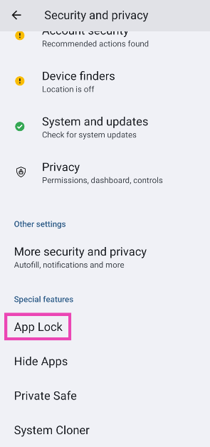 Her Android OEM, uygulamaları şifreli kilitleme yöntemi vardır. Bu seçeneği genellikle aygıt ayarlarında 'Güvenlik ve Gizlilik' bölümünde bulacaksınız.