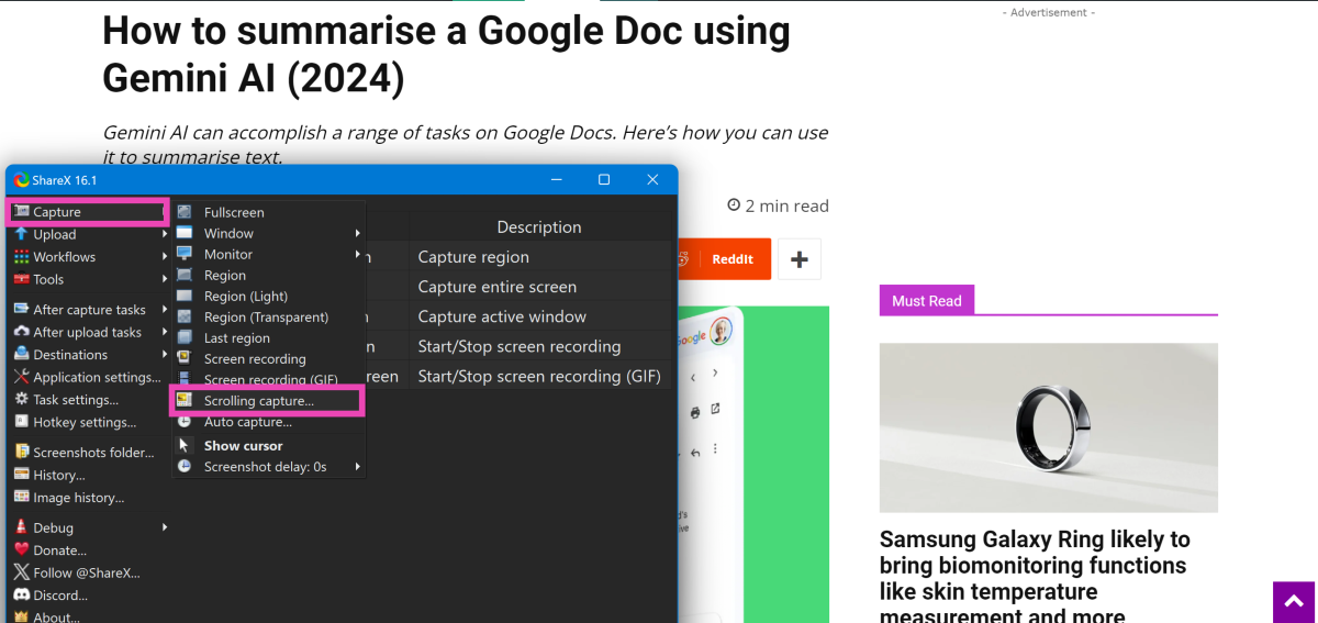Sharex, PC'nizde kaydırma ekran görüntüleri almak için Microsoft Store'dan indirebileceğiniz harika bir uygulamadır.