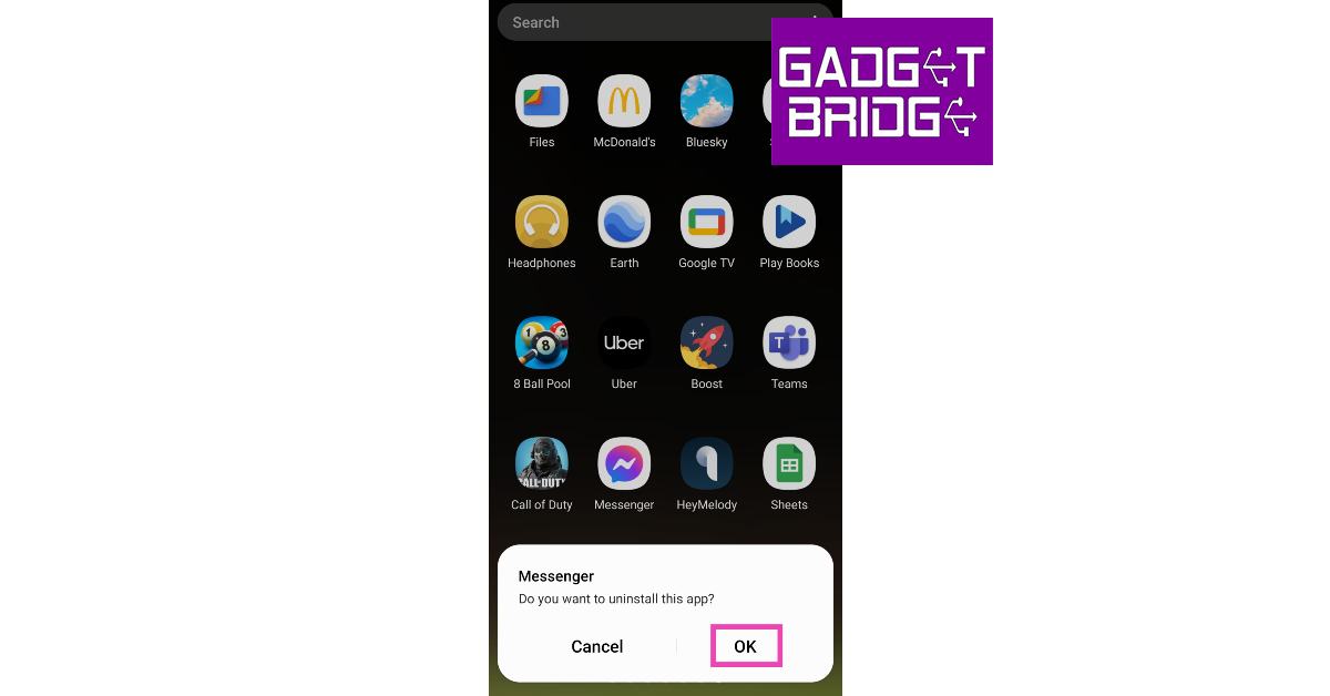 Uygulama çekmecesinde bulamıyorsam telefonumdaki Messenger uygulamasını nasıl kaldırırım?