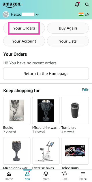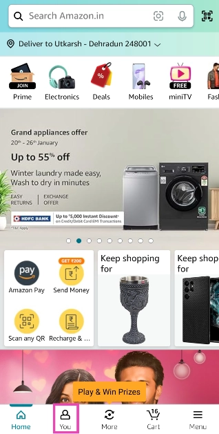 1. Adım: Öğle yemeğiAkıllı telefonunuzdaki Amazon uygulaması veSekme.