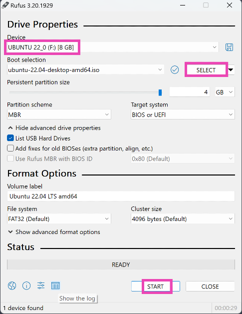 2. Adım:BaşlatmakRufusalet. USB sürücünüzü seçinCihazkategori.