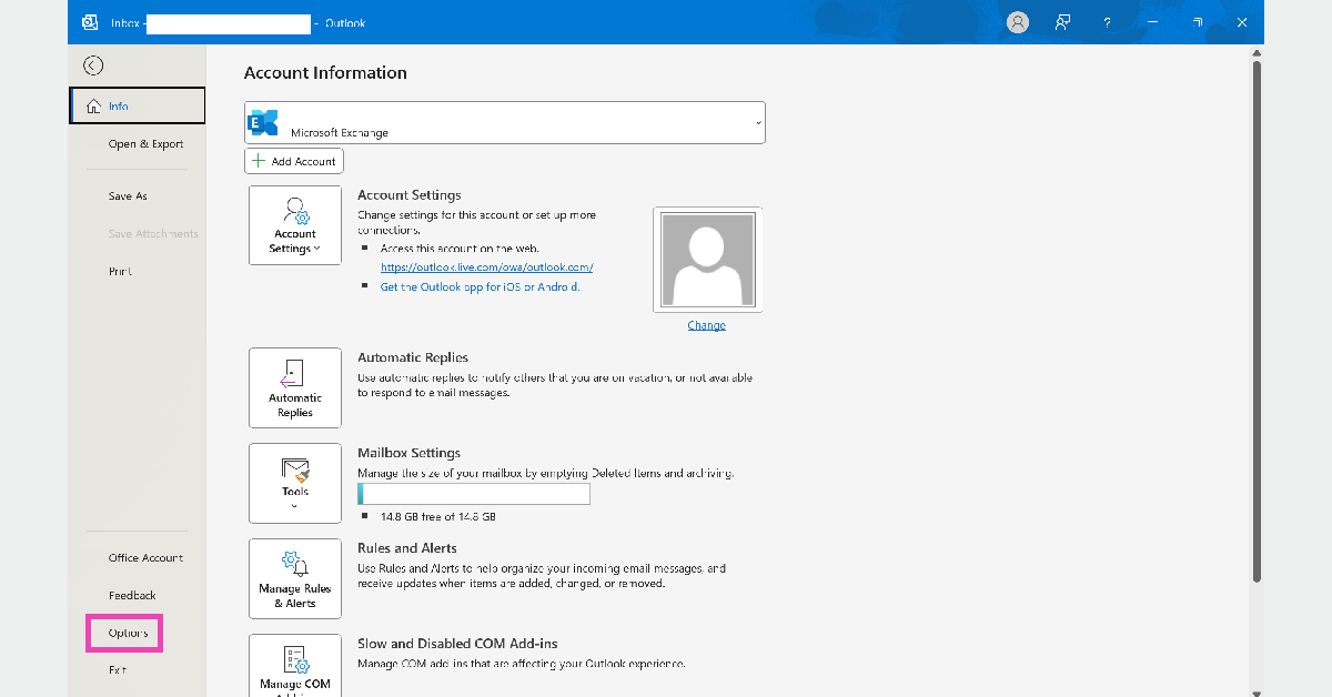 2. Adım:İçindeDosyasekme, tıklayınSeçenekler.