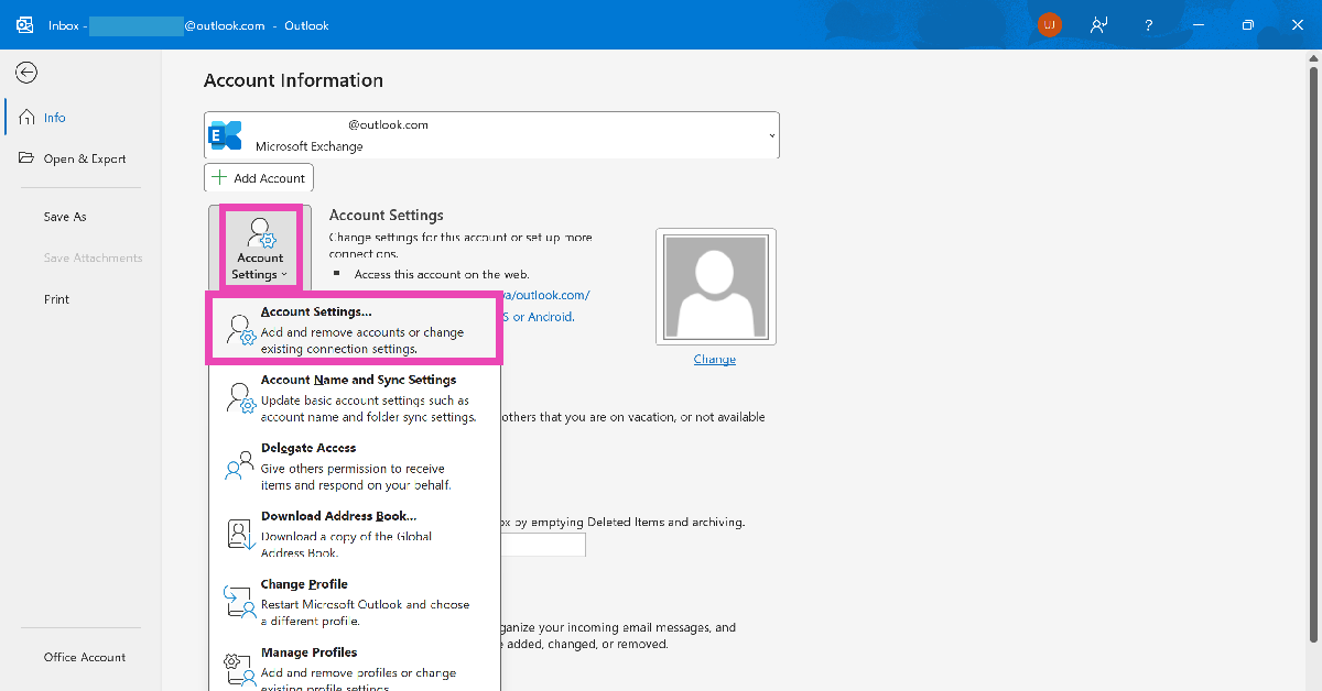 2. Adım:Gidip gelmekDosyave seçHesap Ayarları.