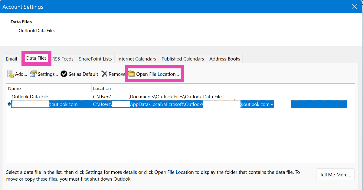 Hesap Ayarları'ndan Clear Outlook (Classic) 'nin önbelleği