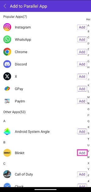 3. Adım:VurmakEklemekKlonlamak istediğiniz uygulamanın yanında.