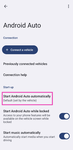 Telefonunuzda gitAyarlar> Bağlı Cihazlar> Android Otomatik> Android otomatik olarak başlatve 'Son Sürücüde Kullanılırsa' seçeneğini seçin.