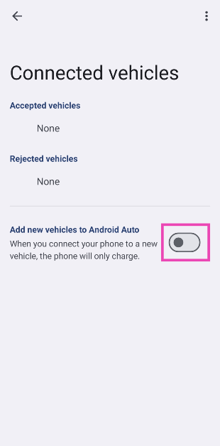 Adım 5:Önceki sayfaya gidin ve yanındaki geçiş anahtarını kapatınAndroid Auto'ya yeni araçlar ekleyin.