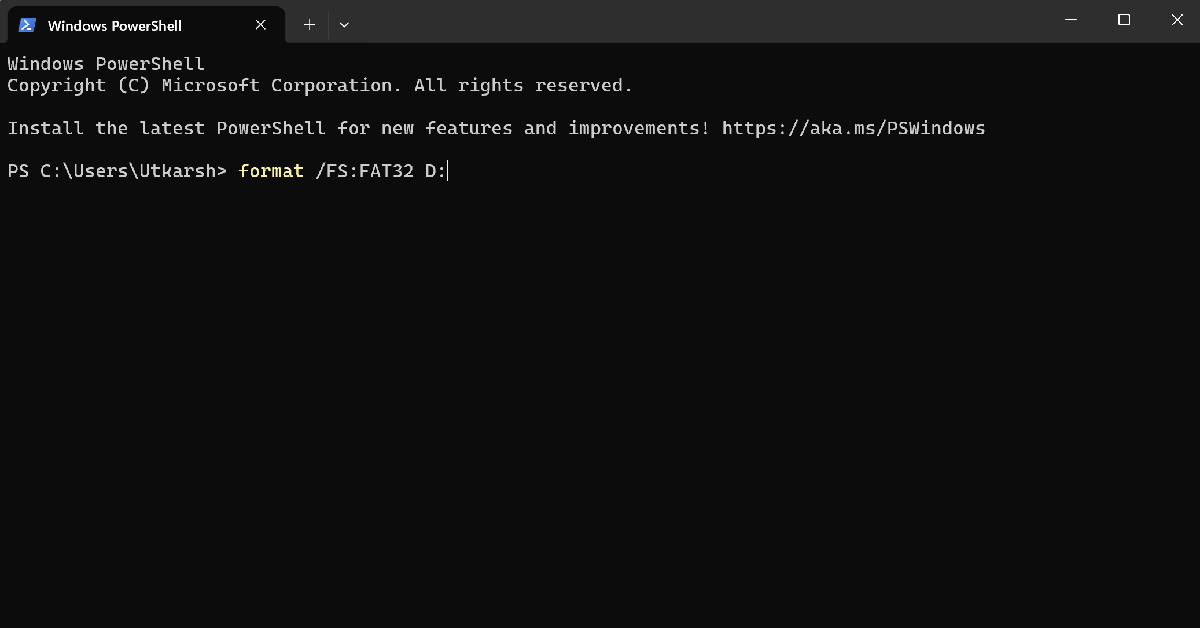 Komut isteminde FAT32'ye bir USB sürücüsünü nasıl biçimlendirebilirim?
