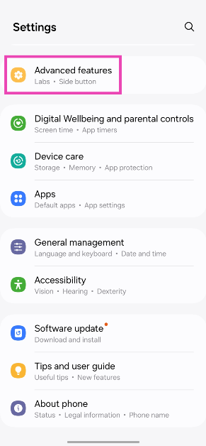 1. Adım:Gidip gelmekAyarlarve seçGelişmiş Özellikler.