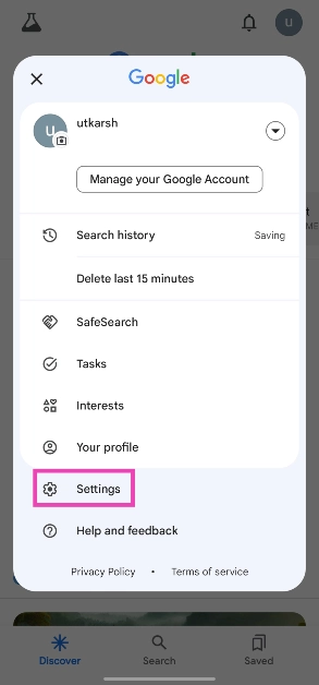 1. Adım:Google uygulamasını açın,profil resmive seçAyarlar.