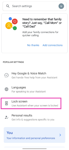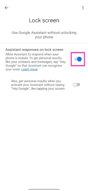 4. Adım:Geçiş anahtarını açınKilit ekranında asistan yanıtları.