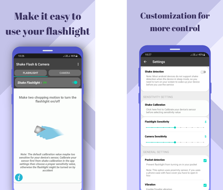 Akıllı telefonunuzun el fenerini açmadan değiştirmenin yerel bir yolu yoksa,. Kurulduktan sonra, bu uygulama için pil optimizasyon ayarlarını devre dışı bırakın ve Shake Feneri için geçiş anahtarını açın. Telefonunuzu kilitleyin ve el fenerini tetiklemek için iki kez sallayın. Kapatmak için tekrar sallayın.