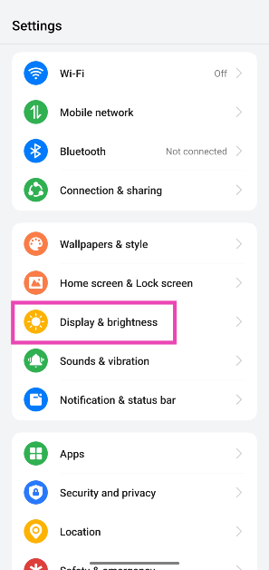 1. Adım:Gidip gelmekAyarlarve seçEkran ve Parlaklık.