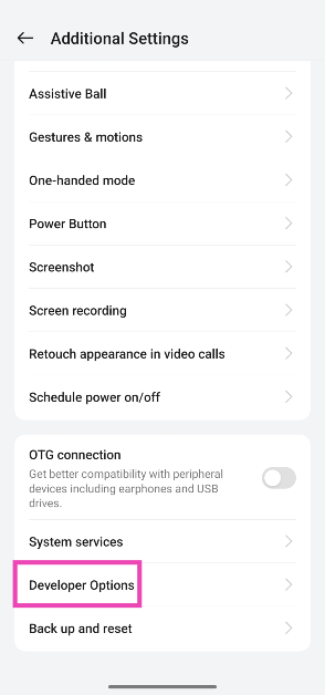 3. Adım:Aşağı kaydırın ve üzerine dokununGeliştirici seçenekleri.