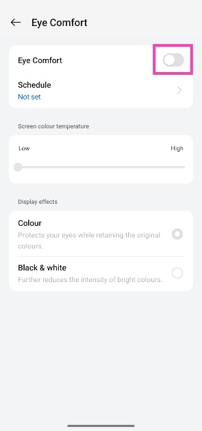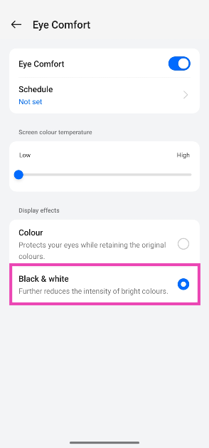 Android telefonunuzun ekranını göz konforunu kullanarak gri tonlamaya çevirin