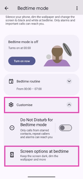 4. Adım:DenemekÖzelleştirmekve seçYatmadan önce ekran seçenekleri.