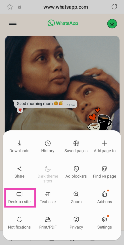 2. Adım:DokunHamburger menü simgesiEkranın sağ alt köşesinde ve seçinMasaüstü sitesi.