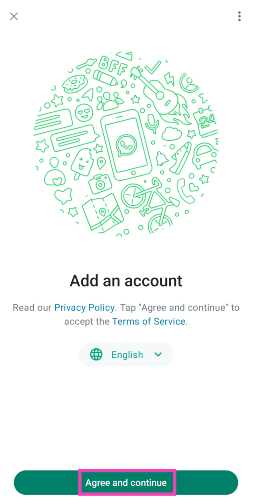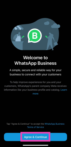 2. Adım:WhatsApp işini başlatın ve kabul edinŞartlar ve koşullar.