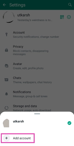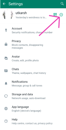Adınızın yanındaki ok simgesini kullanarak iki hesap arasında ileri geri geçebilirsiniz. Telefon numaranıza giriş yapmak yerine, telefonunuzu ikincil WhatsApp hesabınıza bir QR koduyla da bağlayabilirsiniz.