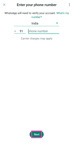 Adım 7:Girintelefon numarasıİkincil WhatsApp hesabınıza kayıtlı.
