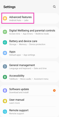 1. Adım:Gidip gelmekAyarlarve seçGelişmiş Özellikler.