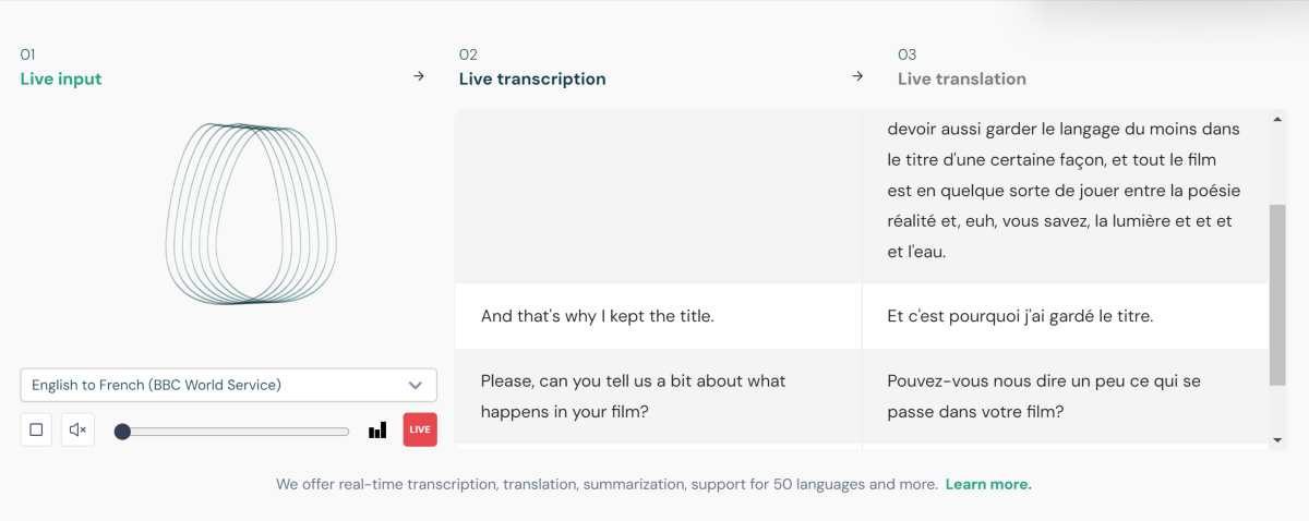 Hızlı bir şekilde kopyalanması gereken büyük bir dosya grubunuz varsa, Speechmatics en iyi seçeneklerden biridir. Temel paketini ayda 4 saatlik gerçek zamanlı sohbet ve 4 saatlik toplu dosyaları ücretsiz olarak kopyalamak için kullanabilirsiniz. Konuşmamatikler 50 dili destekler ve gerçek zamanlı gecikme 1 saniyeden daha azdır. Bunun da ötesinde, bu yazılım hassas zaman damgalarıyla gelebilir ve transkripsiyonu farklı bölümlere bölebilir. Ayrıca metni özetlemeyi ve AI aracının oluşturduğu konu etiketleri aracılığıyla geçmeyi de seçebilirsiniz. Ücretli planları da kontrol edebilirsiniz.Speechmatics'in web sitesi.