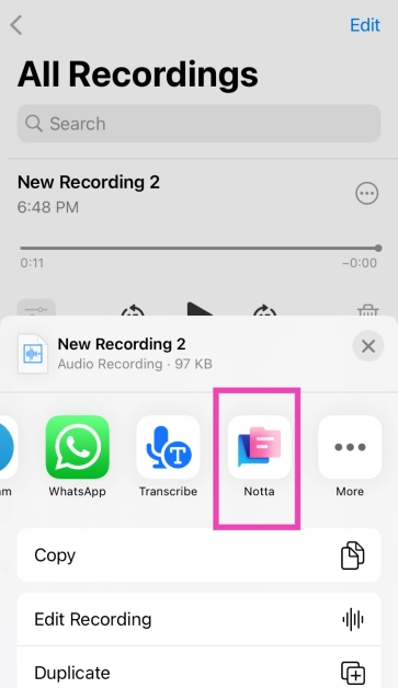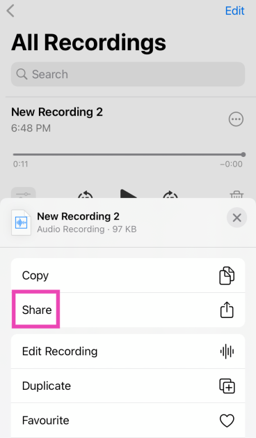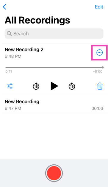 2. Adım:Sesli not uygulamasına gidin vekayıtkopyalamak istiyorsun.