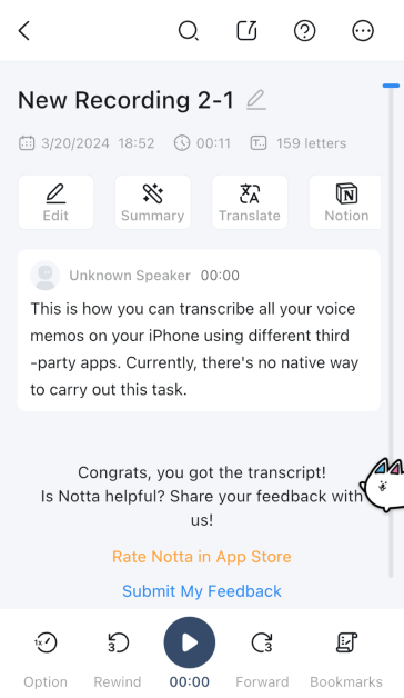 Adım 6:Ses notu olduğundakopyalanmışNotta uygulamasında bir metin dosyası olarak görünecektir.