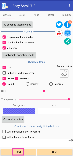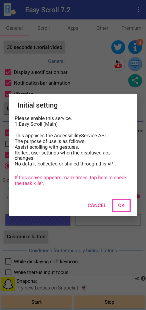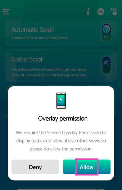 3. Adım:İzin verOtomatik kaydırma düğmesini kaplayınDiğer uygulamalarda.