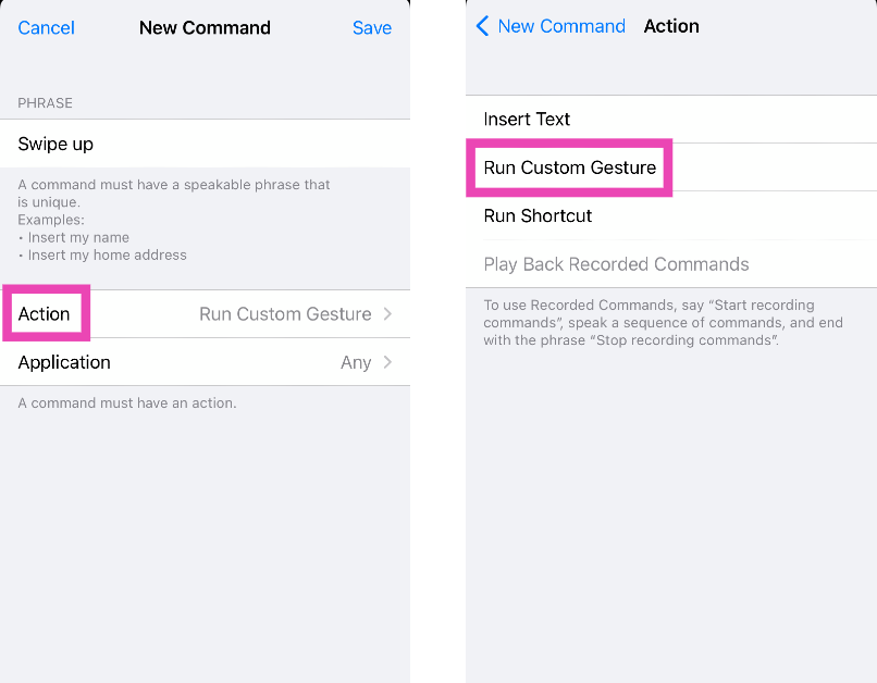 Adım 7:DenemekAksiyonve seçÖzel jest çalıştırın.