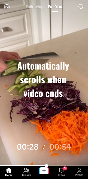 4. Adım:For Sizin Sayfanızı açın. Otomatik kaydırma TT uygulamasıotomatik olarak kaydırınMevcut olanı sona erdiğinde bir sonraki videoya.