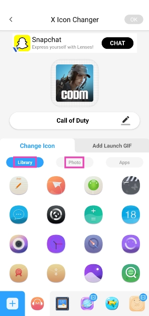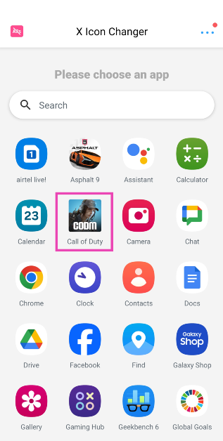 X simge değiştirici uygulamasını indirin ve listeden özelleştirmek istediğiniz uygulamayı seçin. Uygulama simgesi için telefonunuzun galerisinden bir resim seçebilir veya X Icon Changeer'ın kütüphanesinden seçim yapabilirsiniz. Değiştirmek için uygulamanın adına dokunun.