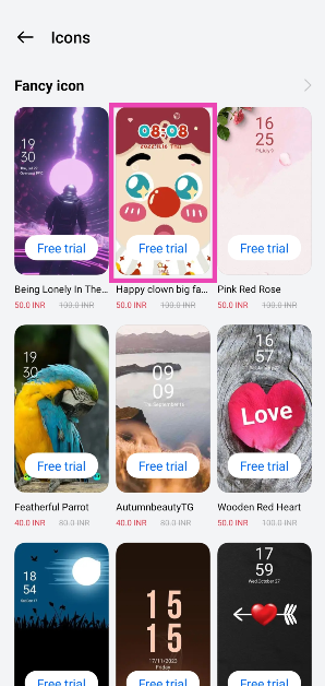 4. Adım:Seçinsimge paketilisteden. Bazı seçenekler küçük bir ödeme gerektirebilir.