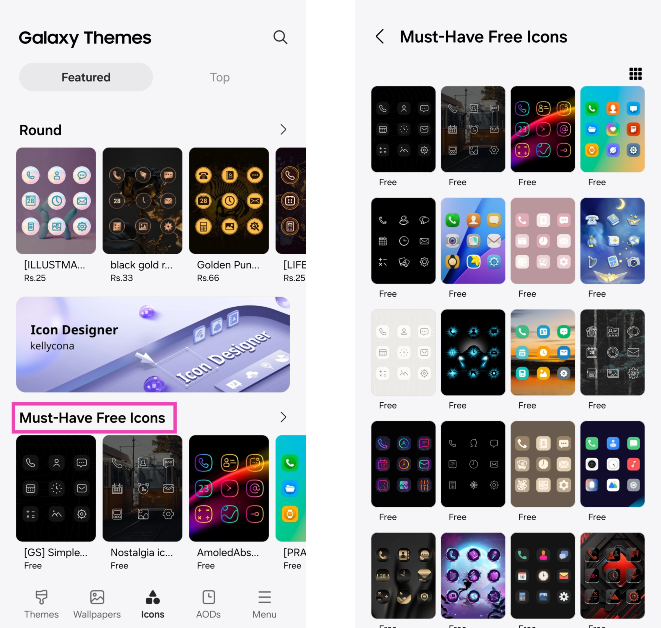 3. Adım:Bir Uygulama Seçinsimge paketilisteden. Biraz bulacaksınÜcretsiz simge paketleriListenin altında.