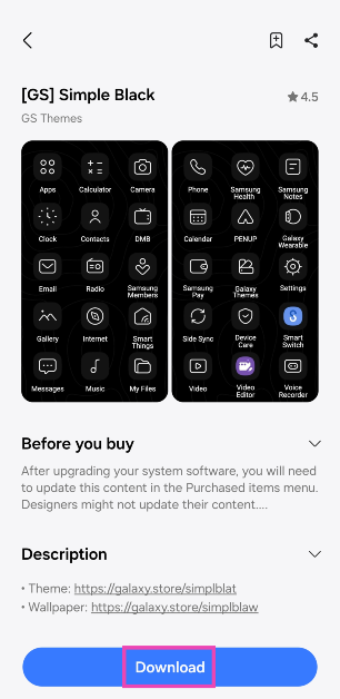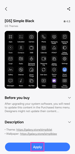 Uygulama simgesi paketi, telefonunuzdaki tüm yerel Samsung uygulamalarına uygulanacaktır.