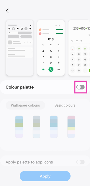 Gidip gelmekAyarlar> Duvar Kağıdı ve Stil> Renk Paletive 'Renk paleti' için geçiş anahtarlarını açın ve 'Uygulama simgelerine palet uygulayın'. Listeden bir renk seçin.