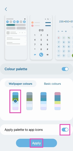 Adım 5:İçin geçiş anahtarını açın 'Uygulama simgelerine paleti uygulayınVe vurUygula.