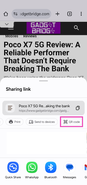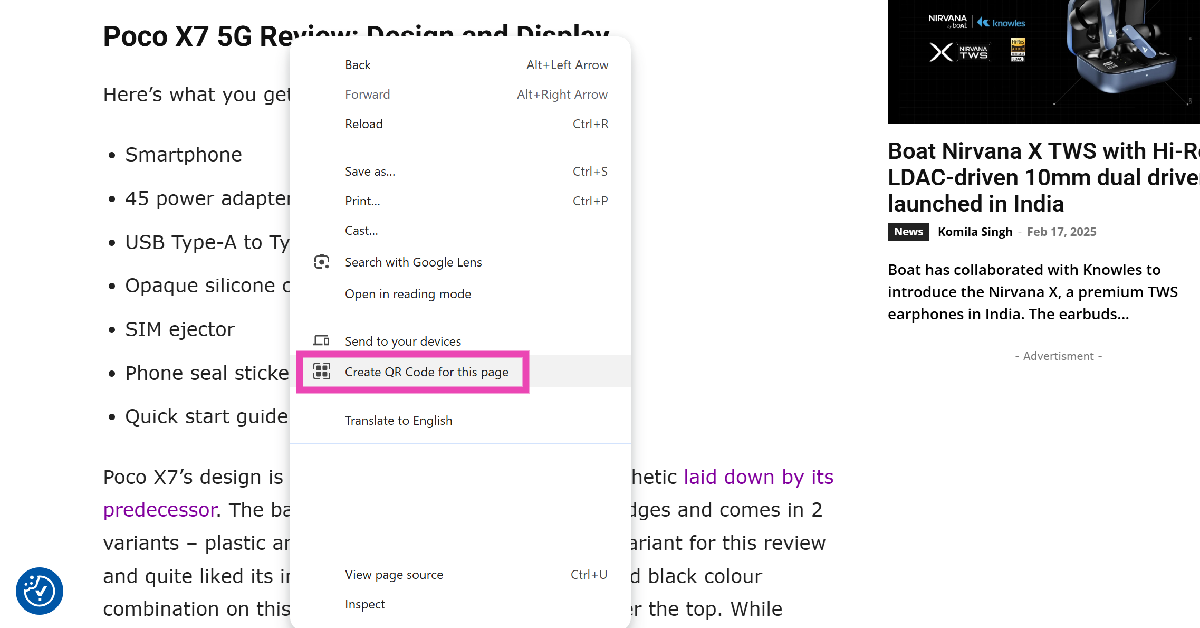 3. Adım:SeçmeBu sayfa için QR oluşturSeçenekler listesinden.