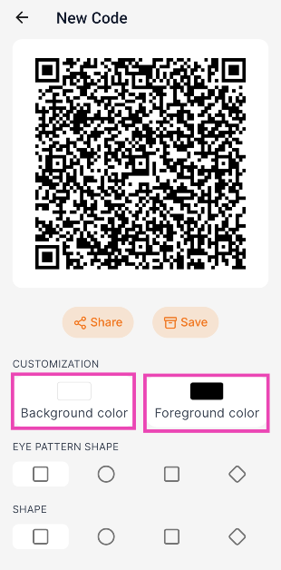 Adım 5: ÖzelleştirmekArka plan ve ön plan renklerini, göz deseni şekli ve piksel şeklini seçerek QR.