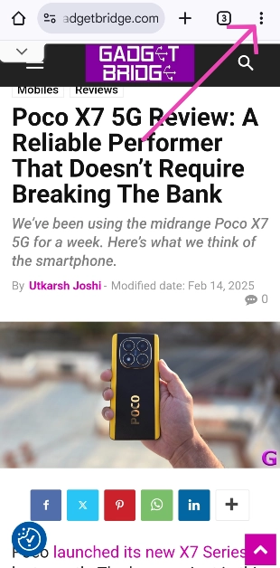 1. Adım: Öğle yemeğiAkıllı telefonunuzdaki Google Chrome uygulaması ve istediğiniz web sayfasına gidin.