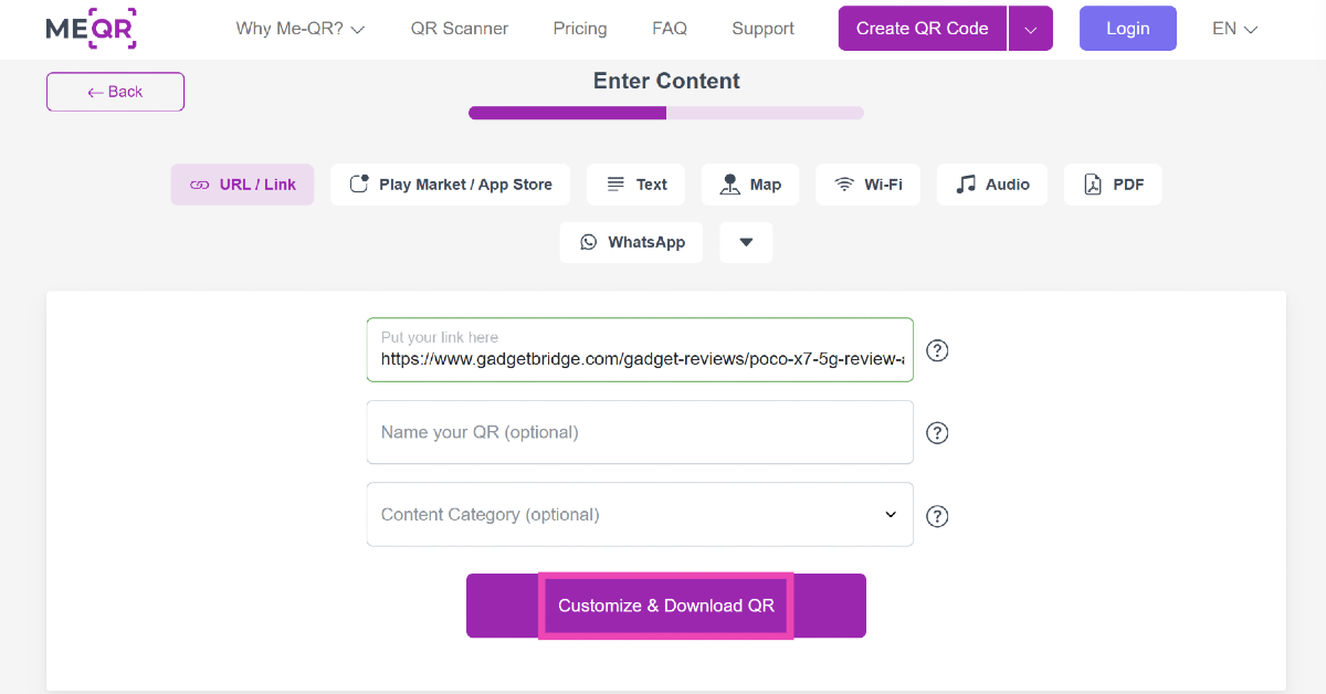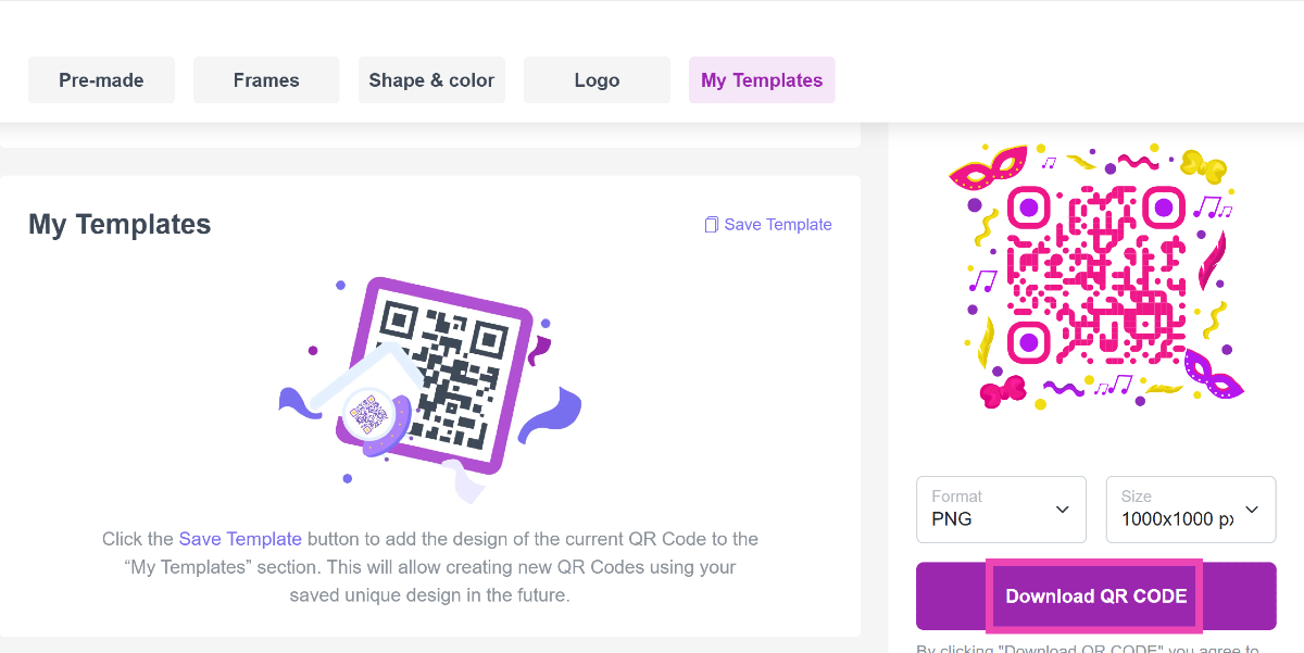4. Adım:VurmakQR'yi Özelleştir ve İndir.
