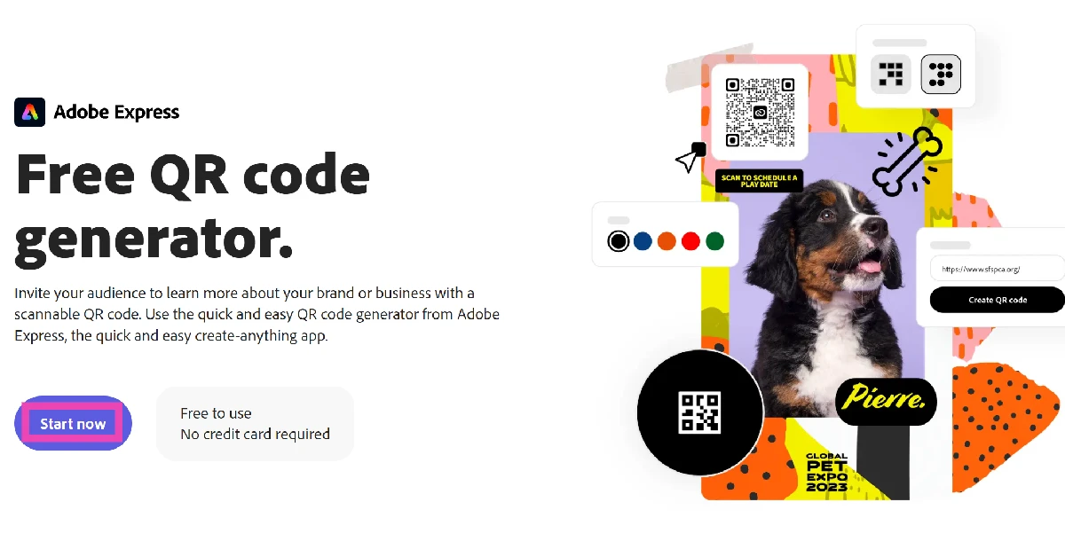 1. Adım:Adobe's'e gitQR kod üreticisiVe vurŞimdi Başla.