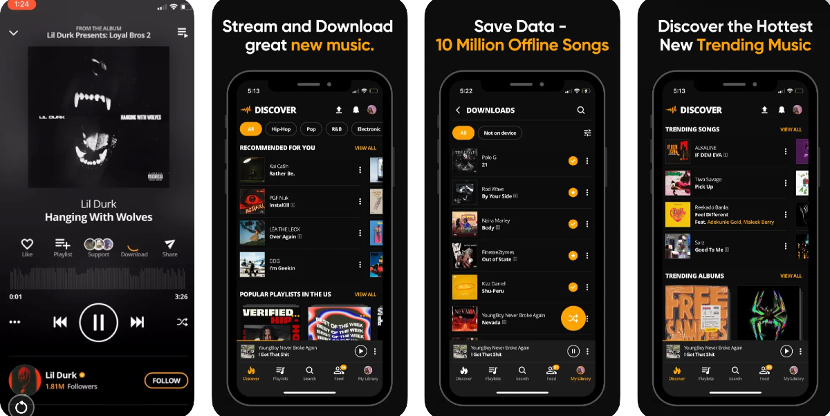Sesticari ve eğlence amaçlı müzik indirmek için en iyi uygulamalardan biridir. Vlogunuz için karamsar bir arka plan numarası arıyorsanız, Audiomack gitmeniz gereken yerdir. Bad Bunny, Diplo, NBA Youngboy ve diğerleri gibi popüler sanatçıları Audiomack'ta bile bulabilirsiniz. Uygulamada bir şarkı çaldıktan sonra, oyuncunun kendisinden kolayca indirebilirsiniz.