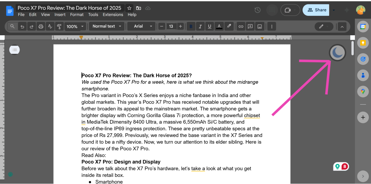 2. Adım:Google Dokümanlar'a gidin. Otomatik olarak geçecekkaranlık mod.