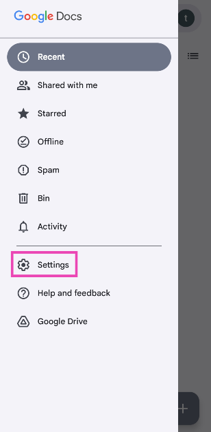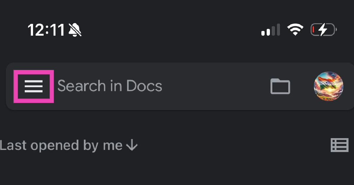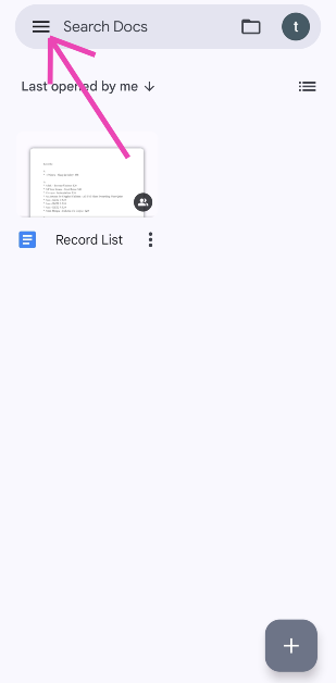 1. Adım: Öğle yemeği.Google Dokümanlar UygulamasıiPhone'unuzda ve vurHamburger menüsüekranın sol üst köşesinde.