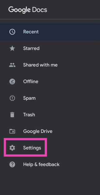 Dokümanlar uygulamasını başlatın, hamburger menüsüne basın, gitAyarlar> Tema Seçinve 'karanlık' seçin.