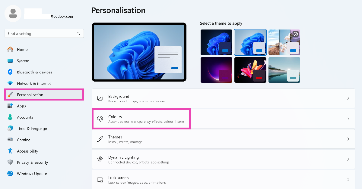 2. Adım:GeçişKişiselleştirme sekmesive seçRenk.