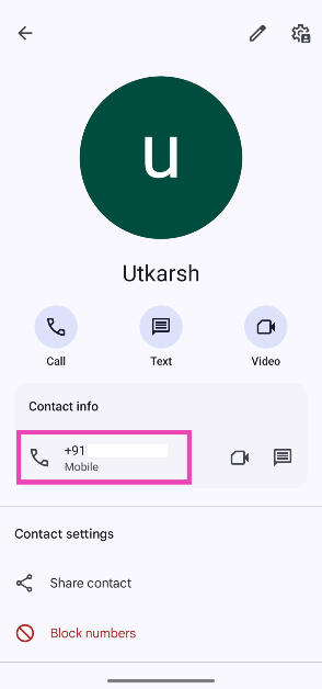 Telefonunuzda Google Kişiler uygulamasını kullanırsanız, başlatın ve profil resminize dokunun. 'Kişiler Ayarları'na gidin ve numaranızı görüntülemek için' bilgilerinizi 'seçin.