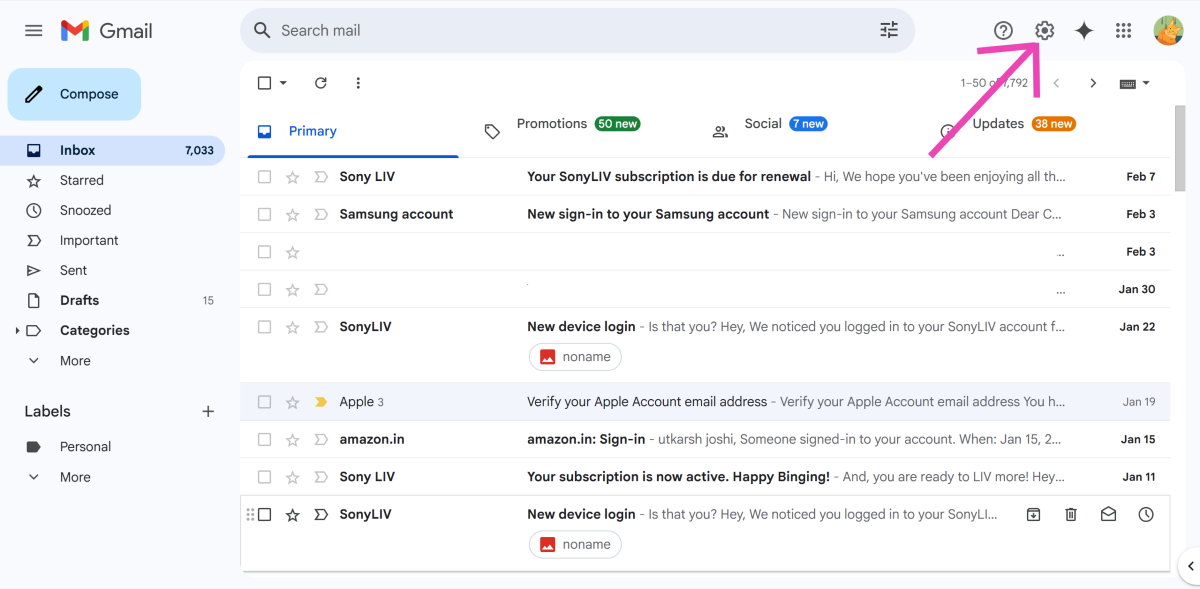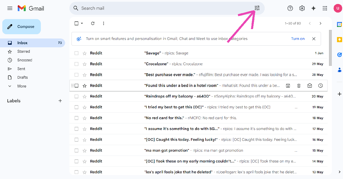 1. Adım:Senin için gitGmail gelen kutusuVe tıklayınvites simgesiekranın üstünde.