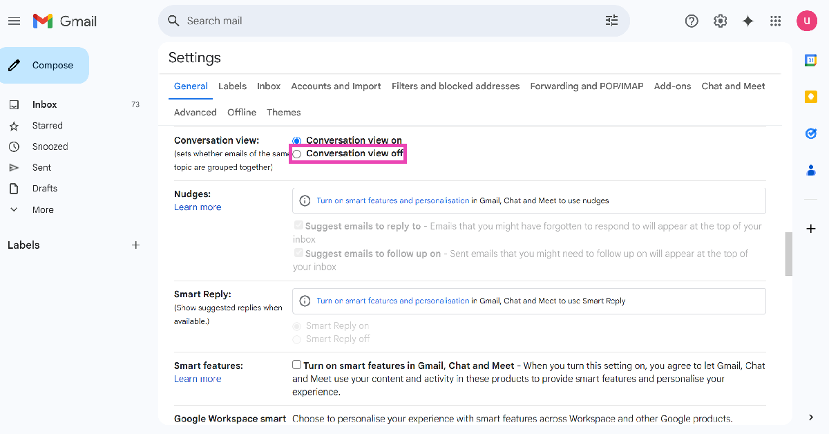 4. Adım:SeçinKonuşma Görüntüleseçenek.